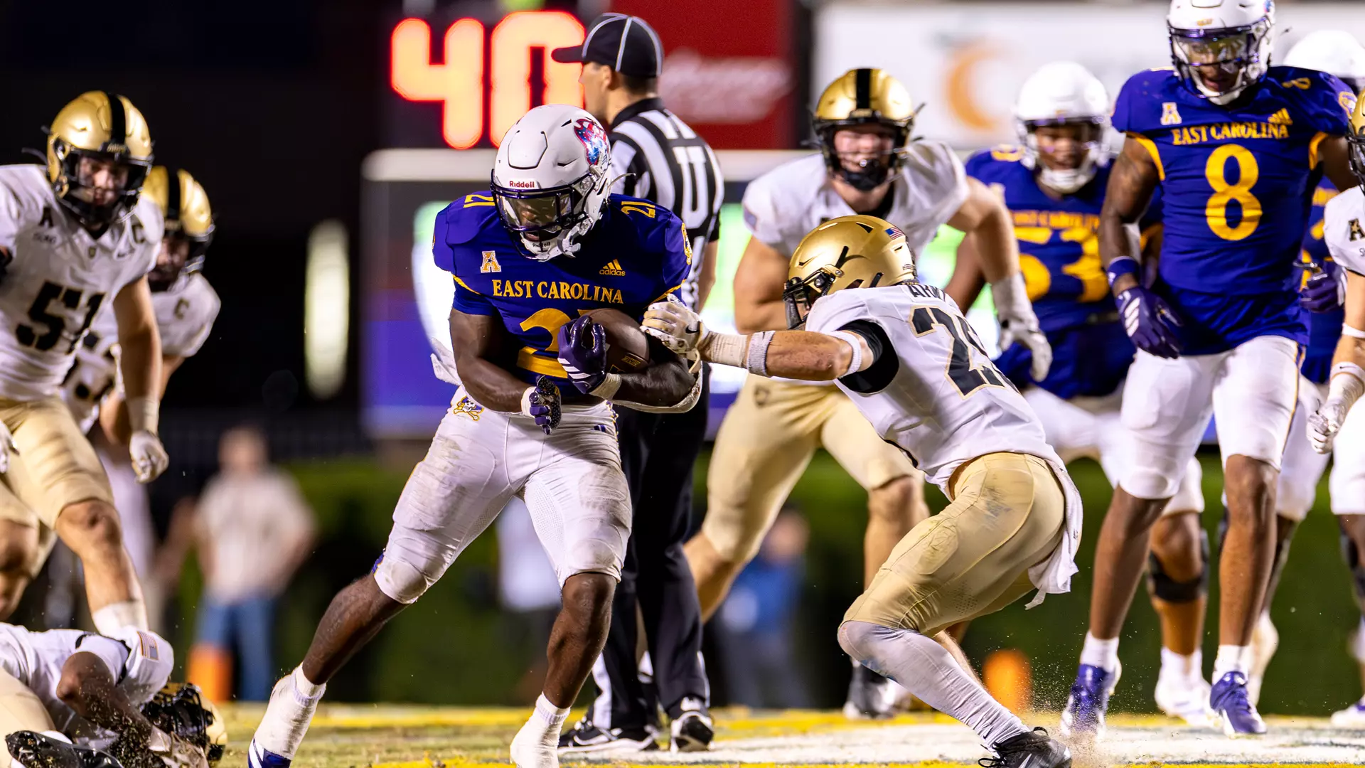 Early in 2025, East Carolina ranks 25th nationally in turnover margin (0.80) and is 23rd in FBS in turnovers gained (4) … On the season, the Pirates have intercepted three passes and have recovered six fumbles, while just turning the ball over five times … Last year the Pirates finished with a -0.62 in turnover margin (ECU 30, Opponents 22) … ECU forced two or more turnovers in a game (2024 season) in eight of 13 contests … The Pirates turned the ball over six times (3 fumbles, 3 INTs) against Norfolk State marking the most since they gave up seven against UAB in 2011 … East Carolina finished the 2023 campaign with a -0.42 turnover margin (ECU 21, Opponents 16) ranking 101st nationally … The Pirates tied a program-best record with eight forced fumbles against Gardner-Webb recovering five – a feat that they last accomplished on Nov. 23, 2002 against TCU (span of 253 games) … The Pirates also scored three defensive touchdowns on the season (2 at Appalachian State, 1 at UTSA) … In 2022, the Pirates finished with a +13 turnover margin forcing 10 fumbles, recovering nine and picked off 11 passes for 154 return yards … ECU led the country in fewest offensive turnovers with seven … Against UCF, ECU forced a season-high four turnovers (3 INTs, 1 fumble) and had five multi-turnover games on the year … Despite its impressive 45-3 win, East Carolina’s 16-game streak of forcing at least one turnover came to a halt against Temple on Nov. 6 (2021) … The run, which began on Oct. 3, 2020 at Georgia State and produced 36 takeaways (22 interceptions, 14 fumble recoveries), was the program’s longest since a 33-game streak (from 2007 to 2010) … In all, ECU still has at least one takeaway in 64 of the last 76 contests, as well as 35 of 43 games dating back to the start of the 2022 campaign.