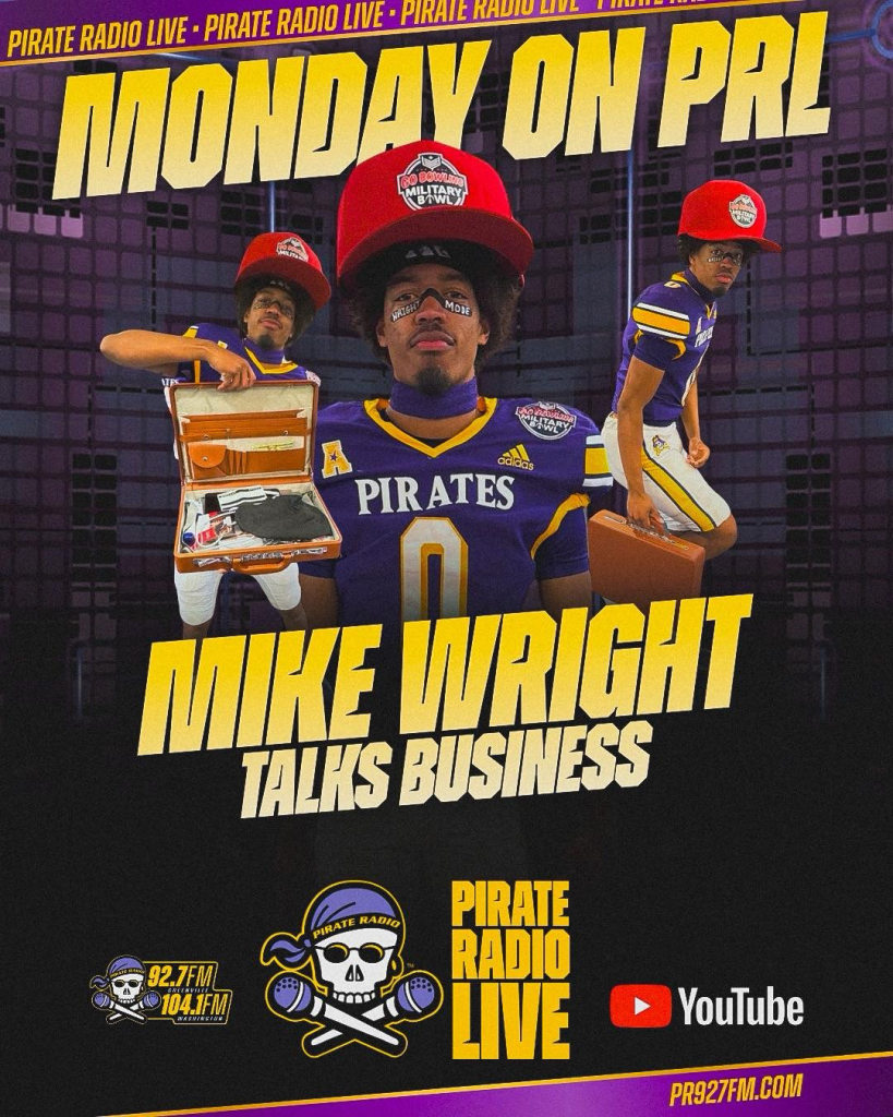 🧳 Today on Pirate Radio LIVE, former ECU Football do-it-all star Mike Wright joins us to discuss the Military Bowl victory.