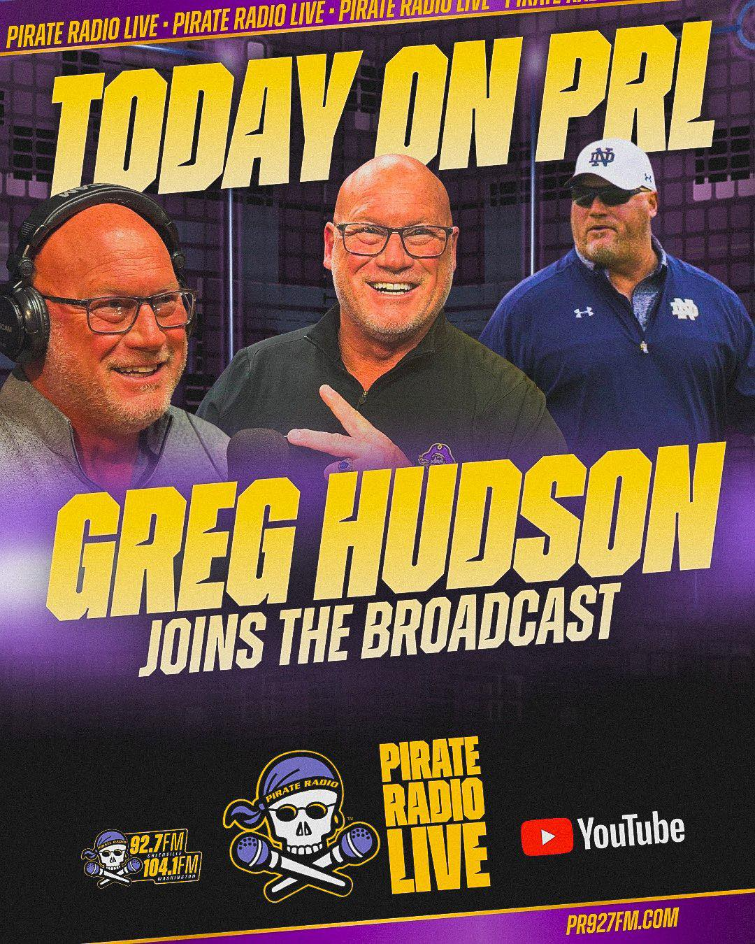 Pirate Radio Live airs each Monday-Friday from 3-6 p.m. on 92.7 FM in Greenville and 104.1 FM in Washington.