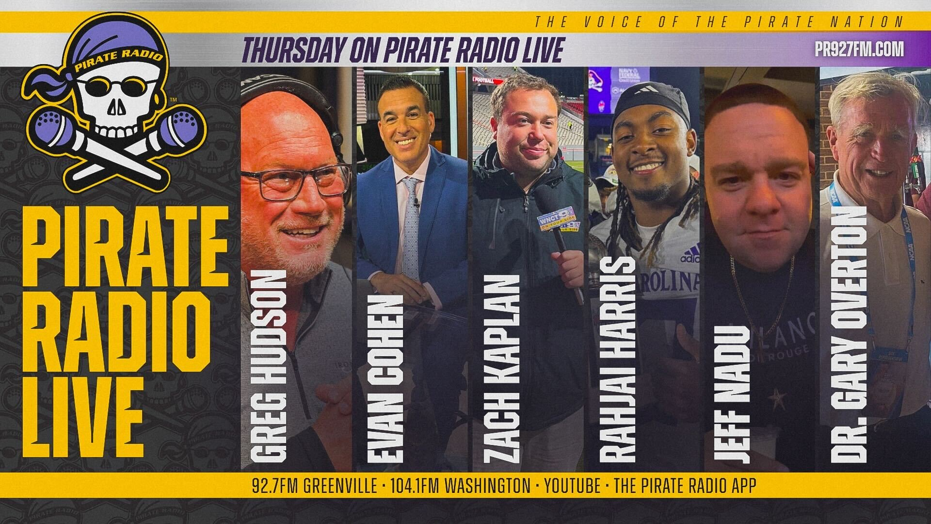 Pirate Radio Live airs each Monday-Friday from 3-6 p.m. on 92.7 FM in Greenville and 104.1 FM in Washington.