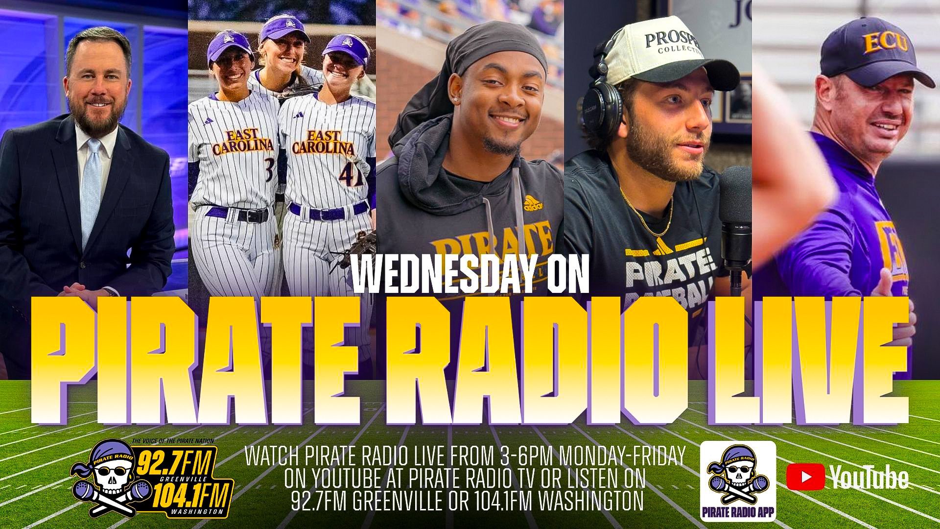 Pirate Radio Live airs each Monday-Friday from 3-6 p.m. on 92.7 FM in Greenville and 104.1 FM in Washington.