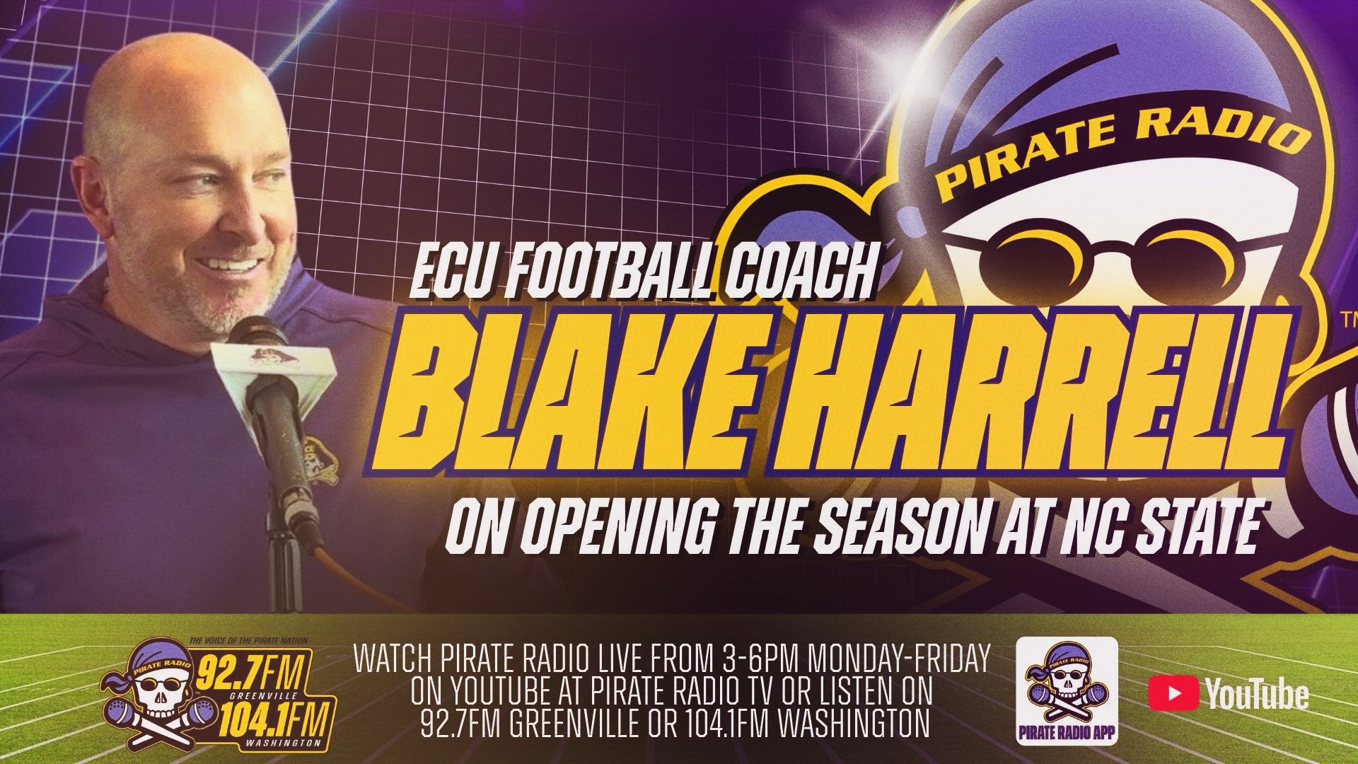 Photo illustration: ECU football coach Blake Harrell (Glenn Griffin, Pirate Radio)